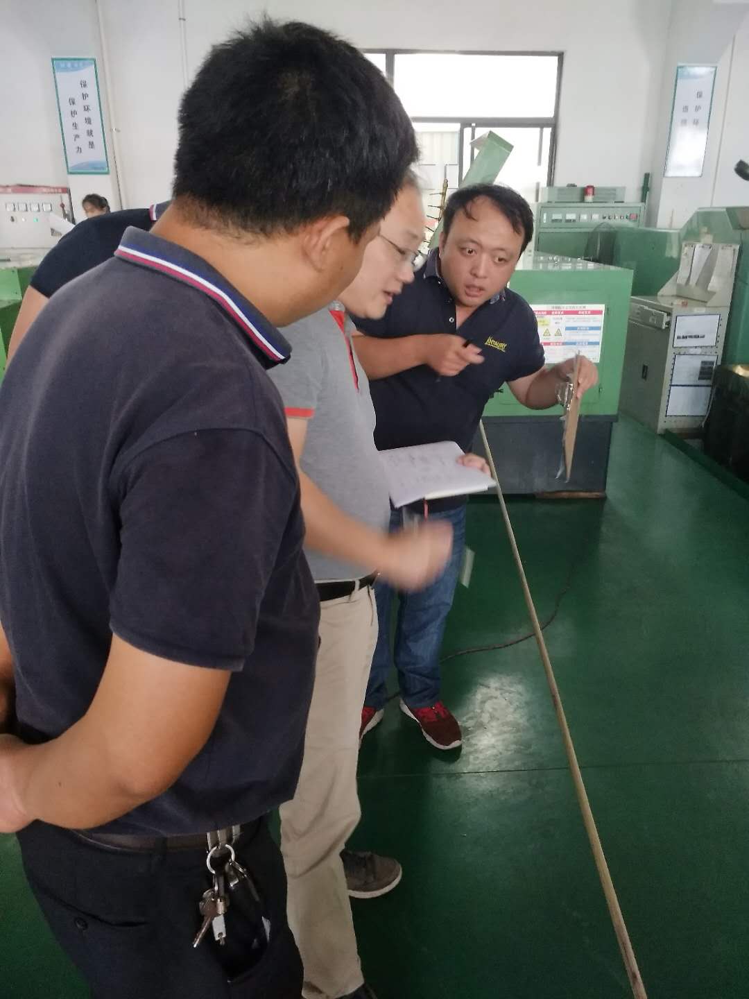 谢先生参观车间并对未来投产后可能所遇到的问题和疑问进行现场询问。